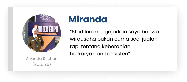 The Start.Inc program that has been implemented has left impressions on the alumni as follows: