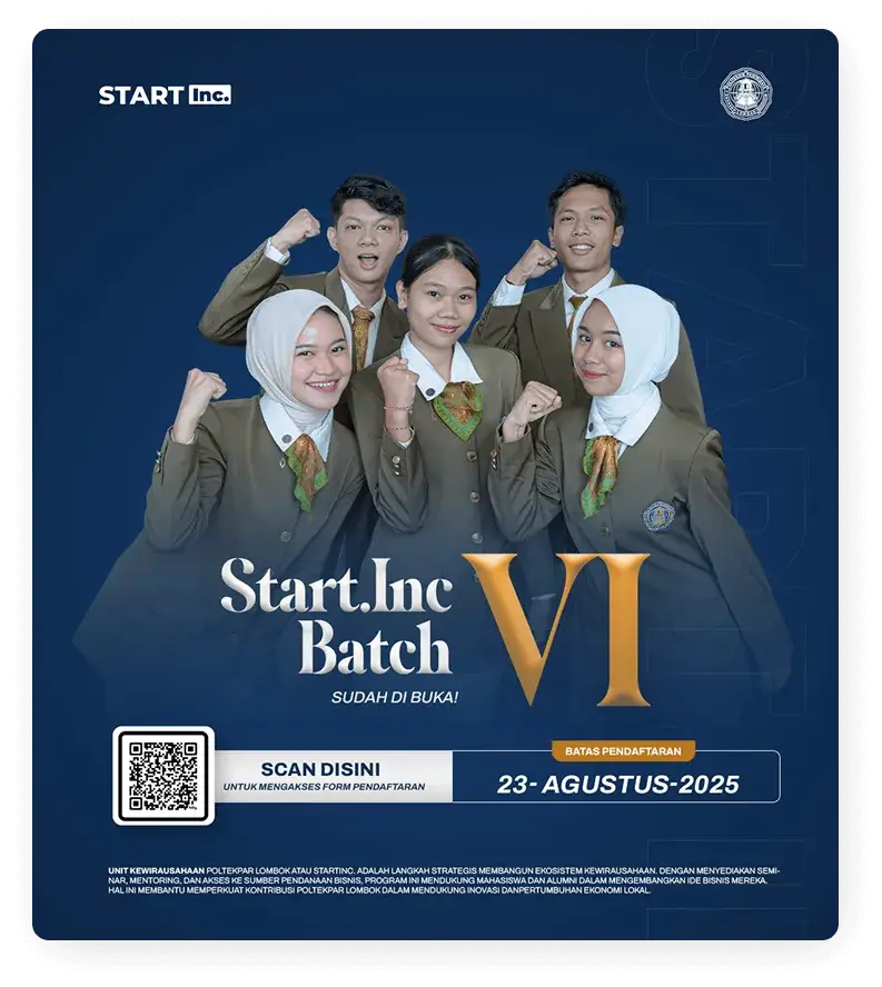 As the business incubator unit of Lombok Tourism Polytechnic, Start.inc provides an ecosystem that fosters the growth of startups and MSMEs in tourism and the creative economy. We believe the best innovations are born from collaboration between the campus and the community